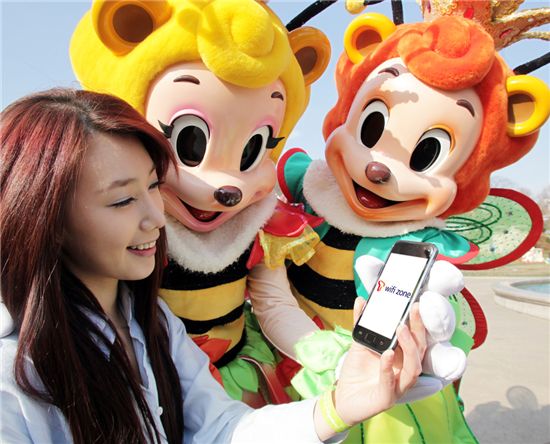 SKT가 용인 에버랜드 전 지역에 와이파이존을 구축하고 서비스를 시작했다.