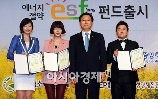 [아시아경제 이재문 기자]31일 오후 서울 삼성동 코엑스에서 열린 범국민 에너지 절약 실천대회에서 에너지 절약 홍보대사로 임명된 허각(맨 오른쪽), 장재인(왼쪽에서 두번째), 양승은 아나운서(맨 왼쪽)가 최중경 지식경제부 장관과 기념촬영을 하고 있다.이재문 기자 moon@<ⓒ세계를 보는 창 경제를 보는 눈, 아시아경제(www.asiae.co.kr) 무단전재 배포금지>