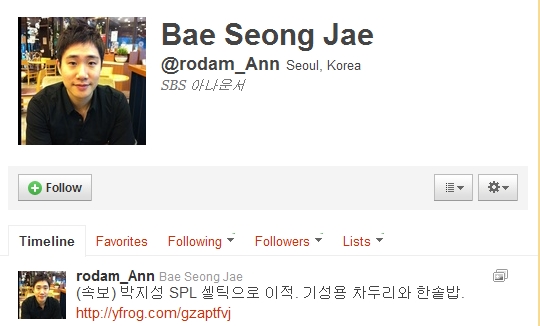 [스포츠투데이 조범자 기자]4월1일 만우절을 맞아 스타들의 트위터에 재치와 기지 넘치는 거짓말의 퍼레이드가 이어지고 있다.가수 윤종신은 1일 자신의 트위터에 "저 사실은 정우성입니다"라는 거짓말 멘션을 올렸다가 '만우절이라도 용서못해요' '정우성 키가 언제부터 160cm이었죠'라는 팬들의 애교있는 항의를 들어야 했다.또 윤도현은 "저두 거짓말 하나. "저 물티슈 끊었습니다""라고 해 팬들의 웃음을 자아냈고 윤하는 '저 송중기입니다. 맞팔 부탁합니다'라는 한 팔로워의 거짓말에 깜빡 속기도 했다. 윤하는 팬들이 '방금 결혼소식 들었다. 축하한다'는 말에 '쉿, 기자님들이 아시면 안되니까..'라며 팬들의 거짓말을 재치있게 맞받아치기도 했다.[사진=배성재 아나운서 트위터]