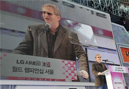2일 마이크 모하임 블리자드 공동설립자 겸 CEO가 LG 시네마 3D 게임 페스티벌에서 축하 인사를 하고 있다.