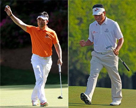 [아시아경제 김현준 골프전문기자] 양용은(39)과 최경주(41ㆍSK텔레콤), 한국의 '원투펀치'가 모두 출발이 좋다. 그것도 '꿈의 메이저' 마스터스다. 양용은은 8일(한국시간) 미국 조지아주 오거스타내셔널골프장(파72ㆍ7435야드)에서 개막한 대회 1라운드에서 13번홀(파5) 이글에 버디 6개(보기 3개)를 곁들여 5언더파 67타를 쳤다. 로리 매킬로이(북아일랜드)와 알바로 퀴로스(스페인) 등 공동선두 그룹(7언더파 65타)과는 불과 2타 차 공동 3위다.2009년 PGA챔피언십 제패에 이어 아시아선수 최초의 '메이저 2승'을 욕심낼만한 자리다. 전반 9개 홀에서만 버디 4개를 솎아내는 등 기선제압이 주효했다. 후반에는 11번홀(파4) 보기를 13번홀 이글로 만회했고, 15, 16번홀의 연속버디로 한때 공동선두까지 올라섰다. 막판 17, 18번홀의 연속 보기가 '옥에 티'였다. "마지막 두 홀이 다소 아쉽지만 샷과 퍼팅 등 모든 샷이 괜찮았다"는 양용은은 "지난해 처음 톱 10(공동 8위)에 진입하는 등 오거스타내셔널골프장은 경기를 치를수록 편안해 (나와) 궁합이 맞는 코스"라면서 "매 샷 마다 최선을 다해 우승 경쟁을 펼치겠다"고 각오를 새롭게 했다.최경주는 상대적으로 어렵다는 후반에 오히려 스코어를 대폭 줄였다. 11번홀(파4)까지 버디 2개와 보기 2개를 맞바꾸며 '제자리걸음'을 걷다가 13~15번홀의 3연속버디로 분위기를 바꾼 뒤 17, 18번홀에서 다시 연속버디를 터뜨려 단숨에 공동 3위로 치솟았다. 지난해 공동 4위에 그쳐 입맛을 다셨던 아쉬움을 달랠 호기다. '차세대 골프황제'로 지목되고 있는 매킬로이는 깔끔하게 7개의 버디사냥을 완성했고, 유럽의 최장타자 퀴로스는 버디 8개와 보기 1개를 묶었다. 양용은과 최경주에 이어 선두권은 매트 쿠차와 리키 반스(이상 미국) 등이 공동 5위 그룹(4언더파 68타)에서 추격전을 전개하고 있는 상황이다.'대회 2연패'를 노리는 필 미켈슨(미국)은 2언더파를 치며 공동 14위에서 샷 감각을 조율하고 있다. '무관의 황제' 타이거 우즈(미국) 역시 1언더파의 평범한 성적으로 일단 공동 24위(1언더파 71타)에 자리잡았다. 우즈는 그래도 "퍼팅이 잘됐다"면서 "아직 3라운드나 남았다"면서 변함없이 투지를 불태웠다.'한국군단'은 마스터스에 처녀출전한 일본의 상금왕 김경태(25)가 2언더파를 쳐 미켈슨의 공동 14위 그룹에 합류해 파란을 준비하고 있다. 지난해 US아마추어챔피언십 준우승자 데이비드 정(21)은 공동 31위(이븐파 72타), 재미교포 앤서니 김(26ㆍ한국명 김하진)과 케빈 나(28ㆍ한국명 나상욱), 지난해 브리티시아마추어 챔프 정연진(21)은 공동 49위(1오버파 73타)다. 김현준 골프전문기자 golfkim@<ⓒ세계를 보는 창 경제를 보는 눈, 아시아경제(www.asiae.co.kr) 무단전재 배포금지>