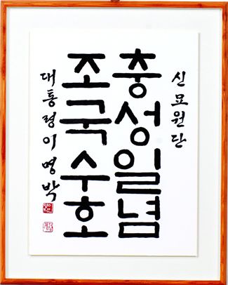 [아시아경제 양낙규 기자]이명박 대통령이 창설 60주년을 맞은 국군기부사령부에 군에서는 다섯번째 휘호를 보냈다. 기무사관계자는 11일 "이 대통령이 지난 1월 26일 '신묘원단 충성일념 조국수호 대통령 이명박'이라고 쓴 휘호를 부대에 직접 하달했다"면서 "휘호석을 만들어 사령부 본청 앞 상징탑 오른편에 세우고 지난 1일 제막식을 열었다"고 밝혔다. 군 통수권자인 대통령이 군 정보·수사기관인 기무사에 휘호를 보낸 것은 박정희 전 대통령이 1972년 ‘부국강병’ 휘호를 기무사의 전신인 보안사에 내려보낸 이후 처음이다. 그만큼 군 정보 수사기관으로서 기무사가 더욱 우리 군과 국가 발전을 위해 헌신해 달라는 격려의 뜻이 고스란히 담겨 있다는 평가다. 이 대통령은 앞서 공군 창군 60주년과 육사 개교 64주년, 해사 개교 65주년, 육군부사관학교 개교 60주년 기념과 국방과학연구소(ADD) 기념일 등을 축하하기 위해 다섯 차례 군에 휘호를 보냈다.군 소식통은 "현직 대통령이 군 정보ㆍ수사기관에 휘호를 직접 써 보낸 것은 상당히 이례적"이라며 "기무사로서는 충성의 일념으로 조국을 영원히 수호하라는 군 통수권자의 의지를 적극 구현하겠다고 다짐하는 등 크게 고무됐을 것으로 보인다"고 말했다.양낙규 기자 if@<ⓒ세계를 보는 창 경제를 보는 눈, 아시아경제(www.asiae.co.kr) 무단전재 배포금지>