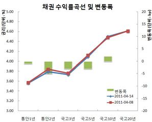 전일에도 밝혔듯 다음주 18일 1조6000억원규모 국고10년물 입찰이 있다는 점에서 헤지가 나올수 있겠다. 이 경우 5년구간이 가장 유리해 보인다. 다만 10년구간이 이번주 가장 약했다는 점에서 상대적 매력이 부각될 가능성도 있겠다. 이번주 지지부진한 장속에서도 통안2년물이 5bp, 국고3년물과 국고5년물이 각각 3bp씩 하락한바 있다. 반면 국고10년물은 2bp가 올랐다.코스피가 전일 2141.06을 기록하며 2011년 4월5일 2130.43이후 최고치를 경신했다. 지난밤 미 증시가 상승했다는 점에서 코스피 강세가 지속될 전망이다. 다만 주말을 앞둔 차익실현이 나올 경우 코스피 약세반전도 생각해 볼수 있겠다.외국인 선물매매동향도 이번주 하루매도 하루매수하는 똑따기 모습이다. 다만 전일 미국채약세라는 점에서 매도가능성에 무게를 둘수밖에 없겠다. 오늘밤 미국이 소비자물가지표발표를 앞두고 있다는 점도 이같이 예상하는 이유다.지난밤 NDF시장에서 원·달러 1개월물이 1087.00/1088.00원에 최종호가됐다. 이는 1개월 스왑포인트 1.95원을 감안할 경우 전일 현물환종가 1086.80원대비 1.25원이 떨어진 셈이다.대내외 물가에 대한 경계감도 커질 예정이다. 한국은행이 아침에 발표한 3월 수출입물가지수에서 수입물가가 전년동월대비 19.6% 상승했다. 이는 2008년 12월 22.4% 이후 2년3개월만의 최고치다. 재정부가 물가안정대책회의 결과를 발표한다. 오늘밤 발표될 미국 3월 소비자물가지수도 2.6%를 기록해 전달 2.1%보다 상승할 것이라고 블룸버그가 설문조사를 통해 밝혔다.한은이 2월 예금취급기관 가계대출을 내놓는다. 김중수 한은총재가 미국 펜실베이니아대 초청강연을 실시한다. 금융투자협회가 주간회사채발행계획을 밝힌다.중국이 3월 경제지표를 각각 발표한다. 미국에서는 2월 자본수지와 4월 미시건대 소비자신뢰지수 잠정치, 4월 뉴욕엠파이어스테이트 제조업지수 등을 내놓는다.김남현 기자 nhkim@<ⓒ세계를 보는 창 경제를 보는 눈, 아시아경제(www.asiae.co.kr) 무단전재 배포금지>김남현 기자 nhkim@<ⓒ아시아 대표 석간 '아시아경제' (www.newsva.co.kr) 무단전재 배포금지>