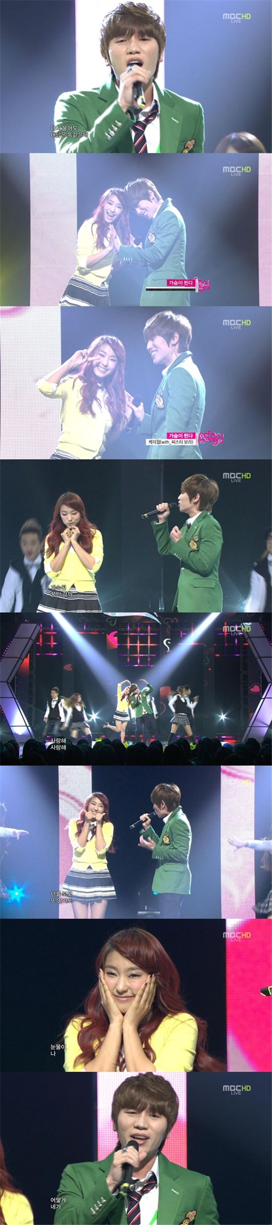 [스포츠투데이 최준용 기자]가수 케이윌과 씨스타 보라가 멋진 합동 무대로 즐거움을 선사했다.케이윌은 16일 생방송으로 진행된 MBC '쇼!음악중심'에 출연해 두 번째 미니음반 타이틀곡 '가슴이 뛴다'를 공개했다.이날 ‘가슴이 뛴다’ 무대에서 케이윌은 아름답고도 경쾌한 멜로디에 맞춰 그간 숨겨뒀던 댄스 실력을 과시했다. 특히 그의 동작 하나, 하나에 이날 운집한 팬들은 환호성을 지르며 박수갈채를 보냈다.아울러 케이윌은 뛰어난 곡 해석능력과 깊이 있는 표현력, 여기에 매력적인 음색으로 무대를 장악했다. 특히 이날 무대 말미에 같은 소속사 후배 씨스타 보라가 지원사격해 눈길을끌었다.두 사람은 아름다운 멜로디와 사랑스런 가사에 맞춰 다정한 스킨십으로 주변의 부러움을 자아냈다.한편 케이윌은 지난 3일 SBS '인기가요' 뮤티즌 송을 수상하며 데뷔 이후 4년 만에 가요계 1위에 오르는 기염을 토했다.스포츠투데이 최준용 기자 yjchoi01@<ⓒ아시아경제 & 재밌는 뉴스, 즐거운 하루 "스포츠투데이(stoo.com)">