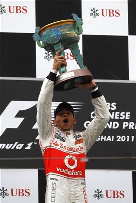 [아시아경제 이정일 기자] 루이스 해밀튼(영국, 맥라렌)이 17일 열린 '2011 F1 중국 그랑프리' 결승에서 우승컵을 안았다.해밀튼은 이날 중국 상하이 인터내셔널 서킷에서 펼쳐진 2011 F1 중국 그랑프리 3라운드 경기에서 5.451km의 서킷 56바퀴(총 주행 거리 305.066km)를 1시간36분58초226에 주행해 가장 먼저 결승선을 통과했다.해밀튼은 올해 세 번째 대회인 중국 그랑프리에서 강력한 우승후보 세바스티안 베텔(독일, 레드불)을 제치고 시즌 첫 번째 우승을 차지했다. 16일 예선에서 3위를 차지한 해밀튼은 20바퀴 이후 5위까지 떨어졌으나 점차 안정을 되찾더니 마지막 5바퀴를 남겨놓고는 베텔마저 제치는 대역전극을 펼쳤다.해밀튼은 랭킹 포인트에서 25점을 보태면서 총점 47점으로 68점의 단독 선두 베텔에 이어 2위를 지켰다. 또한 2008년에 이어 중국 그랑프리에서 두 번째 우승을 차지했다.지난 시즌 챔피언인 베텔은 중국 그랑프리에서 시즌 3연승을 노렸지만 해밀튼에게 역전을 허용하며 1시간37분3초424에 결승선을 2위로 통과했다. 예선에서 1위를 기록한 베텔은 시즌 3연승에 청신호를 켰으나 결선에서는 앞선 대회와 달리 초반부터 선두를 빼앗기며 어려운 레이스를 펼쳤다.그밖에 3위는 마크 웨버(호주, 레드불)가 차지했으며, 2010년 우승자인 버튼은 4위, 니코 로스버그(독일,메르세데스)는 5위, 페르난도 알론소(스페인, 페라리)와 펠리페 마싸(브라질,페라리)는 6위와 7위를 각각 기록했다.또한 ‘F1 황제’ 미하엘 슈마허는 8위, 비탈리 페트로프(러시아, 르노)와 카무이 고바야시(일본, 자우버)가 그 뒤를 이었다.올 시즌 네 번째 레이스인 터키 그랑프리는 5월 6일부터 사흘간 터키 이스탄불 서킷에서 열린다이정일 기자 jaylee@<ⓒ세계를 보는 창 경제를 보는 눈, 아시아경제(www.asiae.co.kr) 무단전재 배포금지>