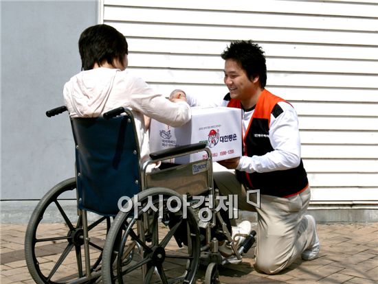 [아시아경제 조슬기나 기자]대한통운(대표 이원태)는 장애인의 날을 맞아 ‘장애인 사랑의 택배’ 행사를 실시한다고 20일 밝혔다.이에 따라 대한통운은 이달 30일까지 10일 간 장애인과 그 가족을 대상으로 무료로 택배를 배송한다. 한 가구당 세 상자까지 접수가능하다. 전화(1588-1255)나 스마트폰 애플리케이션, 인터넷으로 택배를 의뢰하면 대한통운택배 기사가 방문해 장애인 복지카드를 확인하고 무료로 배달해준다. 대한통운은 지난 2001년부터 이 행사를 시행해오고 있다. 대한통운 관계자는 “기업의 사회적 책임을 다하고 고객의 사랑에 조금이나마 보답하기 위해 매년 행사를 진행하고 있다”며 많은 이용을 당부했다. 조슬기나 기자 seul@<ⓒ세계를 보는 창 경제를 보는 눈, 아시아경제(www.asiae.co.kr) 무단전재 배포금지>