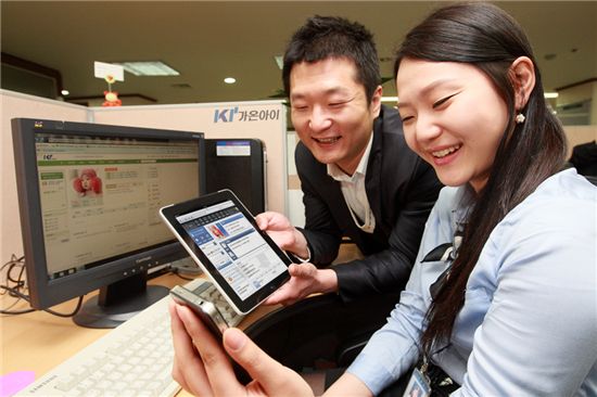 KT는 1일 ‘올레 비즈메카 그룹웨어’를 이용하는 기업에게 스마트폰 또는 태블릿PC에서도 주요 기능을 그대로 이용할 수 있는 모바일 서비스를 무료로 지원한다고 밝혔다.