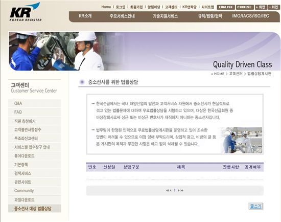 한국선급 홈페이지(www.krs.co.kr) 법률상담 게시판