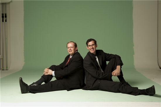 삼성엔지니어링에서 함께 근무하고 있는 마크 힐리어 환경인프라사업팀 부장(왼쪽)과 러셀 리드 프로포잘팀 부장이 기념촬영하고 있다.