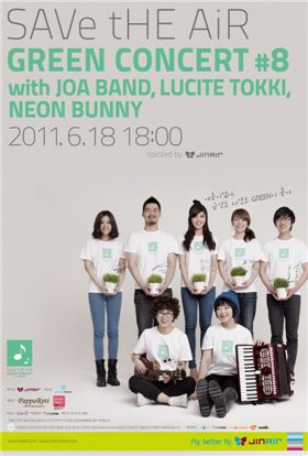 ‘좋아서 하는 밴드’, ‘루싸이트 토끼’, ‘야광 토끼’ 합동 공연[아시아경제 조슬기나 기자]저비용 항공사 진에어는 내달 18일 홍대 상상마당 라이브홀에서 제 8회 세이브디에어 그린콘서트(SAVe tHE AiR Green Concert, 이하 그린콘서트)를 개최한다고 26일 밝혔다.