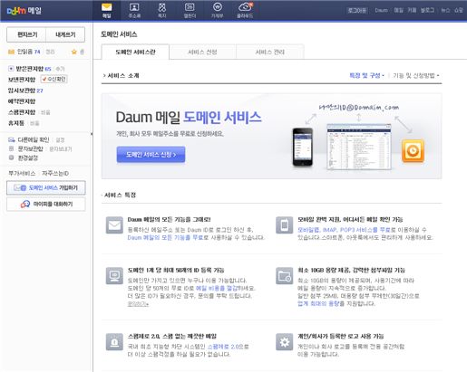 [아시아경제 김철현 기자] 1997년 서비스를 시작한 국내 최초 무료 웹메일 '한메일'이 '다음메일'로 이름을 바꾼다.다음커뮤니케이션(대표 최세훈)은 '한메일'을 '다음메일'로 바꾸고 개방형 메일 기능을 추가한다고 27일 밝혔다.다음은 이번에 '다음메일'로 새단장하는 메일 서비스에 도메인 서비스, 메일 통합 관리 기능 등을 추가했다.도메인 서비스는 개인이나 기업이 소유하고 있는 도메인 주소로 다음메일을 사용할 수 있는 것이다. 'ID@Domain.com'과 같은 메일 주소로도 다음의 웹메일을 사용할 수 있다는 얘기다. 다음은 개인 메일 주소가 필요한 블로거, 업무용 메일이 필요한 기업과 기관, 친목을 위한 동호회와 카페 이용자 등에게 적합하다고 설명했다.다음은 도메인 1개 당 최대 50개까지 메일계정을 무료로 제공하며, 개인이나 회사가 원하는 로고를 등록해 '다음메일'을 전용 공간처럼 사용 할 수 있게 했다. 지능형 스팸차단서비스, 주소록 등 '다음메일'의 주요 기능도 함께 제공된다.또한 '다음메일'에서 다른 메일로 보내기·받기 기능을 제공해, 구글이나 네이버와 같은 다른 메일 주소 5개까지 발신 및 수신이 가능하다.다음 권지영 커뮤니케이션기획팀장은 "다음메일 개방형 서비스에 이어 클라우드 안드로이드폰용 애플리케이션과 마이피플PC 애플리케이션을 출시할 예정"이라며 "앞으로 다음을 대표하는 메일, 마이피플, 클라우드 서비스를 강화해 이용자들이 언제 어디서나 다음의 커뮤니케이션 서비스를 즐길 수 있게 하겠다"고 말했다.한편 '다음메일'은 환경설정에서 'ID@daum.net'과 'ID@hanmail.net'을 선택할 수 있으며 'ID@daum.net'을 선택하면 발송시 'ID@daum.net'으로 표시되며, 수신시 'ID@daum.net'과 'ID@hanmail.net'으로 모두 받을 수 있다. 김철현 기자 kch@<ⓒ세계를 보는 창 경제를 보는 눈, 아시아경제(www.asiae.co.kr) 무단전재 배포금지>