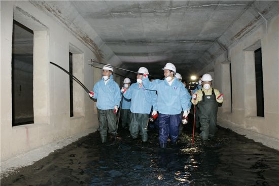 [아시아경제 박종일 기자]양천구(이제학 양천구청장)는 30일 여름철 집중호우에 대비하여 민관 합동으로 수방시설(하수암거 및 양화빗물펌프장)을 집중 점검했다. 이제학 양천구청장이 하수암거내 유수장애시설 유무, 준설토 퇴적 여부, 하수 박스 구조물 파손 등을 점검하고 있다.박종일 기자 dream@<ⓒ세계를 보는 창 경제를 보는 눈, 아시아경제(www.asiae.co.kr) 무단전재 배포금지>