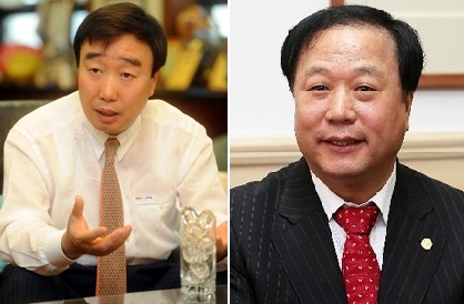 (좌측부터) 정휘동 청호그룹 회장과 김영택 김영 편입학원 회장.