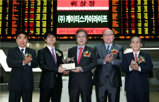 [아시아경제 지선호 기자] 한국거래소 유가증권시장본부(본부장 이창호)는 3일 오전 서울사옥 종합홍보관에서 위성방송서비스업체인 KT스카이라이프의 유가증권시장 신규상장기념식을 개최했다. 사진 왼쪽부터 이창호 한국거래소 유가증권시장본부장, 박태언 KT스카이라이프 노조위원장, 이몽룡 KT스카이라이프 대표, 임기영 대우증권 대표, 서진석 상장회사협의회 부회장지선호 기자 likemore@<ⓒ세계를 보는 창 경제를 보는 눈, 아시아경제(www.asiae.co.kr) 무단전재 배포금지>