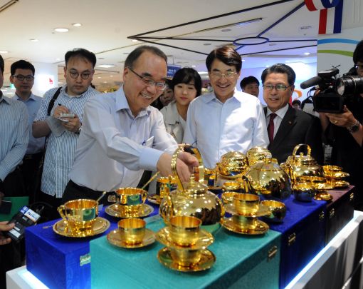 박재완 신임 기획재정부 장관이 6월 3일 오전 서울 목동의 중소기업 제품 전문 백화점 '행복한 세상'을 방문해 현장 관계자들의 의견을 듣고 있다.
