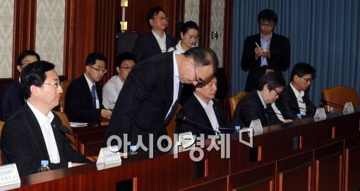 [아시아경제 이재문 기자]박재완 기획재정부장관이 8일 서울 세종로 정부중앙청사에서 취임 이후 첫 경제정책조정회의를 주재하기에 앞서 참석한 장.차관 등에게 고개 숙여 인사하고 있다.이재문 기자 moon@<ⓒ세계를 보는 창 경제를 보는 눈, 아시아경제(www.asiae.co.kr) 무단전재 배포금지>