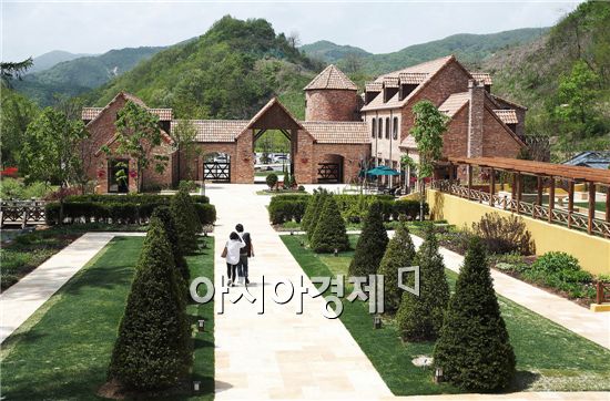 [아시아경제 조용준 기자]초여름이 성큼 다가왔다. 싱그러운 초록 기운을 듬뿍 머금은 강원도권 수목원은 5월보다 지금이 더 화려하다. 이미 남쪽에서는 지고 없는 봄 식물들이 여름 식물과 더불어 아름다운 꽃을 피우기 때문이다. 짙은 녹음과 화려한 꽃이 가득한 수목원을 거니는 것은 그래서 놀라움의 연속이다. 꽃잎과 나뭇잎에 이슬이 방울방울 맺힌 이른 아침이나 비가 갠 오후 수목원에 간다면 더더욱 경이롭다. 서울에서 1시간 거리인 춘천시 남산면 서천리의 제이드가든은 '숲 속에서 만나는 작은 유럽'을 컨셉트로 최근 문을 연 수목원이다.