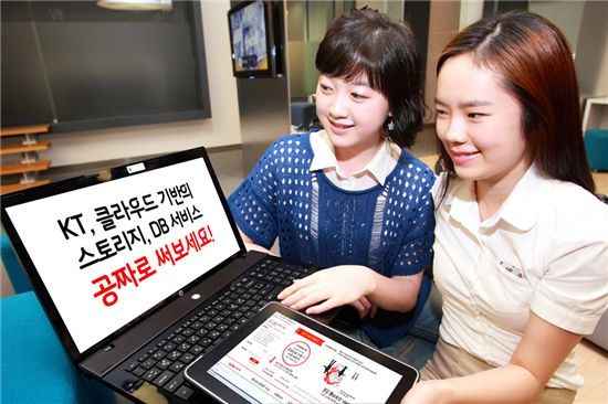 KT는 클라우드 기반 신규 서비스인 기업용 스토리지 및 데이터베이스 서비스의 상용화에 앞서 무료 베타테스트를 진행한다고 13일 밝혔다.<br /> <br />