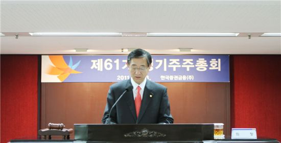 [아시아경제 정호창 기자]한국증권금융은 13일 서울 여의도 본사 강당에서 정기주주총회를 열고 재무제표 승인, 사외이사 선임 등 안건을 원안대로 통과시켰다고 밝혔다.증권금융은 이날 주주총회에서 운용자산이 전기 대비 3% 증가한 42조6000억원, 당기순이익은 전기 대비 17% 감소한 1777억원 등의 영업실적을 보고하고 주당 500원(배당률 10%)의 현금배당을 결의했다.김영과 대표는 영업보고를 통해 "올해 핵심 경영목표를 '신뢰와 안정을 통한 상생경영 강화'로 설정했다"며 "이를 위해 자본시장에 대한 자금 및 유가증권 공급 기능을 강화해 나가고, 유상증자 등 자본확충을 통한 자생적 경영역량 확보에 집중하겠다"고 밝혔다. 이어 "사회적 책임경영 강화를 통하여 '함께하는 기업'이 되고자 노력할 것"이라고 덧붙였다.한편 이날 주주총회에서는 사외이사로 김태기 단국대 경제학과 교수를 재선임하고, 조영일 변호사를 신규 선임했다.