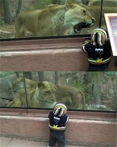 [아시아경제 온라인이슈팀] 동물원의 사자가 아기에게 관심을 보이는 영상이 네티즌들 사이에 화제다. 최근 유튜브에는 '암사자가 아기를 먹으려고 한다'는 제목으로 동물원에서 촬영된 것으로 보이는 영상이 게재됐다.공개된 영상 속에는 한 아기가 사자를 가까이서 구경하고 있고 사자는 이 아이에게 다가와 입을 벌리고 손을 문지르는 듯한 행동을 하고 있다. 비록 유리벽을 사이에 두고 있었지만, 마치 사자와 아기가 교감이라도 나누는 듯한 모습이 눈길을 끈다.