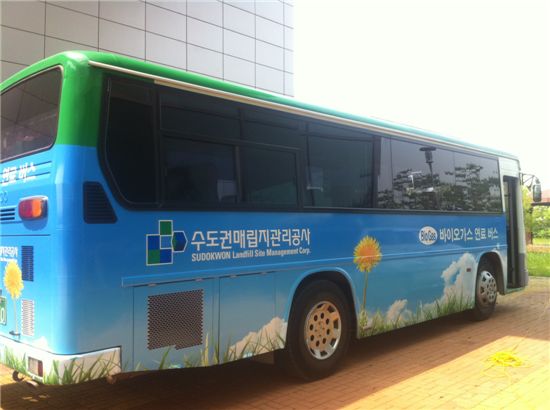 16일 국내 최초로 바이오가스 연료를 충전해 유영숙 장관 등 주요 내빈에게 시승행사를 벌이게 될 CNG버스.