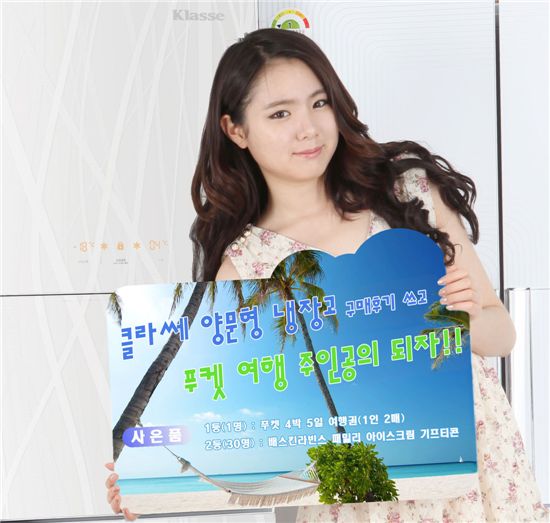 [아시아경제 김진우 기자]대우일렉(대표 이성)은 '2011년형 클라쎄 양문형 냉장고' 출시를 기념해 다음달 15일까지 구매 고객을 대상으로 추첨을 통해 300만원 상당의 여행권을 증정하는 '푸켓 여행의 주인공이 되자' 이벤트를 진행한다고 19일 밝혔다.이번 이벤트는 전국 유통 매장에서 클라쎄 양문형 냉장고 신제품 구입 후 대우일렉 온라인 카페(//cafe.naver.com/klasseoven) 에 구매 후기를 남기면 자동으로 참여가 되며, 추첨을 통해 1등에게는 300만원 상당의 4박5일 푸켓 여행 상품권을, 2등 30명에게는 2만원 상당의 패밀리 아이스크림 기프티콘이 증정된다. 당첨자는 내달 21일 해당 온라인 카페를 통해 공지된다.또 대우일렉은 여름휴가 시즌을 맞이해 내달 말까지 2011년형 클라쎄 양문형 냉장고 구매 고객 모두에게 30만원의 가격할인 혜택을 제공, 휴가를 계획하고 있는 고객들의 휴가비 부담을 덜어 준다는 계획이다.대우일렉은 특수소재와 초자인쇄 기법을 채용해 자연의 입체감과 생동감까지 살린 클라쎄 양문형 냉장고 4종을 출시, '자이언트 포켓'과 '아이디어 밀폐실' 등 독창적 내부 수납공간으로 편의성을 극대화함과 동시에 소비자의 감성까지 사로잡는 디자인으로 시장 공략에 나서고 있다.