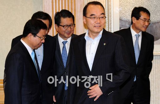 [아시아경제 윤동주 기자] 박재완 기획재정부 장관이 20일 서울 중구 명동 은행회관에서 경제연구소장들과 조찬 간담회를 갖기에 앞서 기념 촬영을 마친후 자리로 돌아가고 있다.윤동주 기자 doso7@<ⓒ세계를 보는 창 경제를 보는 눈, 아시아경제(www.asiae.co.kr) 무단전재 배포금지>