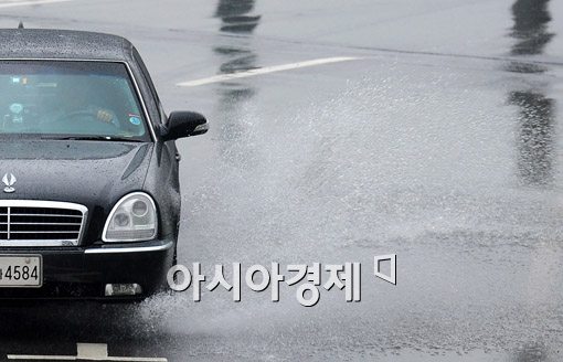 [아시아경제 윤동주 기자] 장마전선의 북상으로 서울을 비롯한 중부지방에 최고 150mm 가량의 많은 비가 내린 23일 서울 여의도 한 도로가 물 웅덩이가 고여 있다.윤동주 기자 doso7@<ⓒ세계를 보는 창 경제를 보는 눈, 아시아경제(www.asiae.co.kr) 무단전재 배포금지>