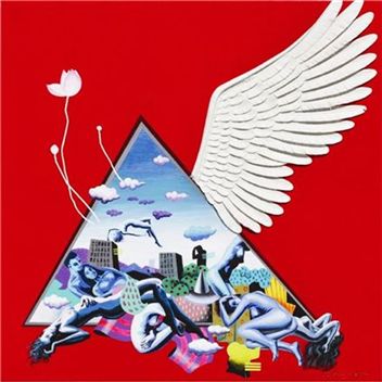 속과 겉, 안과 밖이 대조를 이루고 날개의 비상을 통해 새로운 차원으로 고양된다. 음과 양, 남과 여의 갈등과 대립이 날개의 비상을 통해 지양되고 소통된다.The surface & the inside and in & out form a contrast respectively and they are sublated into a new level through the soaring of wings. Yin & Yang (the negative and the positive) and conflict and opposition between male and female are sublated and come to an understanding about each other through the soaring of wings.FLY-知的과습의 해방 2, 캔버스 위에 아크릴릭, 한지 112×100cm, 2008<br />