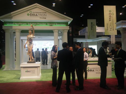 이달 초 미국 시카고에서 열린 세계 임상종양학회 연례학술대회(ASCO)장에 마련된 셀트리온 부스. 셀트리온헬스케어의 젊은 피들이 디자인부터 프로모션까지 책임지고 운영한다.