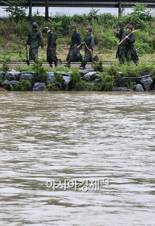 [아시아경제 윤동주 기자] 서울을 비롯한 중부지방에 집중 호우가 쏟아진 29일 오후 서울 중랑천 일대 공원이 물에 잠기는 등 피해가 커지고 있는 가운데 샵을 든 군인들이 어디론가 이동하고 있다.윤동주 기자 doso7@<ⓒ세계를 보는 창 경제를 보는 눈, 아시아경제(www.asiae.co.kr) 무단전재 배포금지>