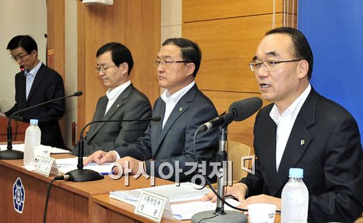 [아시아경제 윤동주 기자] 30일 오전 과천청부청사에서 열린 하반기 경제정책방향 경제 부처 장관 합동 브리핑에서 박재완 기획재정부 장관이 하반기 주요 경제정책방향에 대해 발표하고 있다.윤동주 기자 doso7@<ⓒ세계를 보는 창 경제를 보는 눈, 아시아경제(www.asiae.co.kr) 무단전재 배포금지>