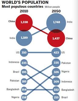 미국 인구 센서스국은 2050년이 되면 중국을 제치고 인도가 인구 최다국이 될 것으로 전망했다.