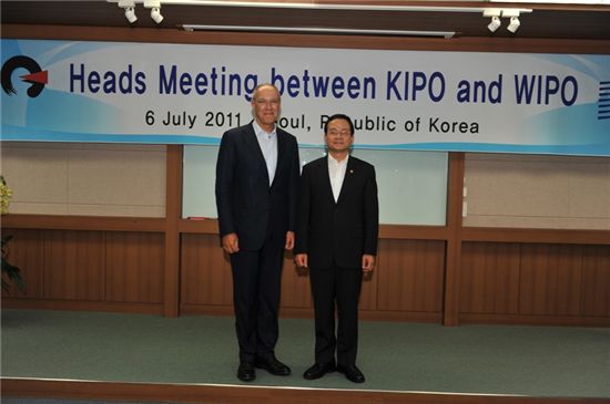 프란시스 거리 세계지식재산기구 사무총장의 방한은 우리나라가 지난 4월29일 지식재산기본법을 만듦에 따라 이를 축하하고 한국과 세계지식재산기구 협력확대를 논의하기 위해 이뤄졌다.이수원 특허청장은 “우리 기업들이 좀 더 편하게 국제특허 및 상표제도를 활용할 수 있게 WIPO와의 협력을 더 끈끈히 할 것”이라고 말했다. 한편 세계지식재산기구 사무총장은 7일 서울대와 지식재산석사과정 공동개설을 위한 업무협약(MOU)을 맺고 국내 주요 기업의 지재권 관계자들 모임인 한국지식재산협의회(KINPA) 와 간담회를 가져 국내 국제특허(PCT) 출원기업과 의견을 주고받을 예정이다.왕성상 기자 wss4044@<ⓒ세계를 보는 창 경제를 보는 눈, 아시아경제(www.asiae.co.kr) 무단전재 배포금지>왕성상 기자 wss4044@<ⓒ아시아 대표 석간 '아시아경제' (www.newsva.co.kr) 무단전재 배포금지>