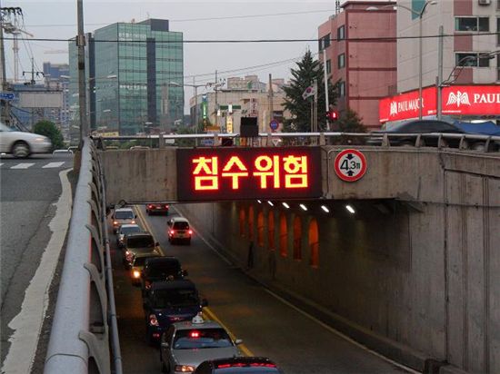 돌발성 집중호우 대비 신월지하차도에 국내 최초로 침수경고시설 도입 설치