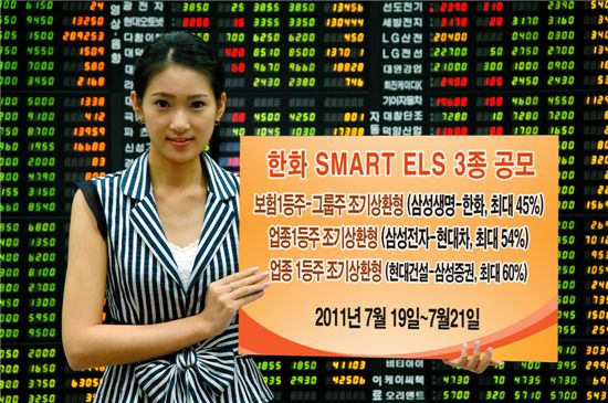 [아시아경제 김유리 기자]한화증권은 19~21일 주가연계증권(ELS) 3종을 판매한다.'한화스마트ELS 831호'는 최근 주가조정을 받은 보험1등주 삼성생명과 안정적인 주가 흐름을 보이고 있는 그룹주 한화를 기초자산으로 하는 스텝다운 ELS다. 3년 만기로 운용되고, 매 6개월마다 조기상환조건이 충족되면 최대 45%(연 15%)의 수익이 지급된다. 조기상환평가일에 기초자산의 종가가 최초 기준가격의 90%(6, 12개월), 85%(20, 24개월), 80%(30, 36개월) 이상인 경우 최대 45%(연 15%)의 수익률로 조기상환된다. 만기까지 상환조건을 충족하지 못할 경우에도 기초자산 가격이 55% 미만으로 하락한 적이 없으면 원금과 45%의 수익을 지급한다.'한화스마트ELS 832호'는 업종1등주 삼성전자와 현대차를 기초자산으로 하는 스텝다운 ELS다. 3년 만기로 운용되고 매 6개월마다 조기상환조건이 충족되면 최대 54%(연 18%)의 수익이 지급된다. 조기상환평가일에 기초자산의 종가가 최초 기준가격의 90%(6, 12개월), 85%(20, 24개월), 80%(30, 36개월) 이상인 경우 최대 54%(연 18%)의 수익률로 조기상환된다. 만기까지 상환조건을 충족하지 못할 경우에도 기초자산 가격이 55% 미만으로 하락한 적이 없으면 원금과 54%의 수익을 지급한다.'한화스마트ELS 833호'는 업종 1등주 현대건설과 삼성증권을 기초자산으로 하는 스텝다운 ELS로 3년 만기로 운용된다. 매 6개월마다 조기상환조건이 충족되면 최대 60%(연 20%)의 수익이 지급된다. 조기상환평가일에 기초자산의 종가가 최초 기준가격의 90%(6, 12개월), 85%(20, 24개월), 80%(30, 36개월) 이상인 경우 최대 60%(연 20%)의 수익률로 조기상환된다. 만기까지 상환조건을 충족하지 못할 경우에도 기초자산 가격이 60% 미만으로 하락한 적이 없으면 원금과 60%의 수익을 지급한다.김유리 기자 yr61@<ⓒ세계를 보는 창 경제를 보는 눈, 아시아경제(www.asiae.co.kr) 무단전재 배포금지>