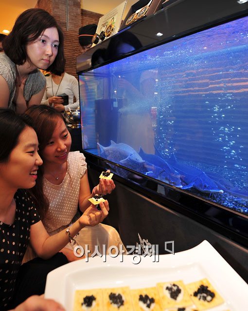 [아시아경제 윤동주 기자] 롯데백화점은 20일 서울 중구 소공동 본점 식품관에서 살아 있는 철갑상어전시와 골드라벨 오세트라 캐비아 시식회를 진행하고 있다. 식품관 리뉴얼을 기념해 마련된 이번 행사에서 살아 있는 철갑상어도 보고 세계3대 진미라고 불리는 캐비아도 맛볼수 있다.윤동주 기자 doso7@<ⓒ세계를 보는 창 경제를 보는 눈, 아시아경제(www.asiae.co.kr) 무단전재 배포금지>