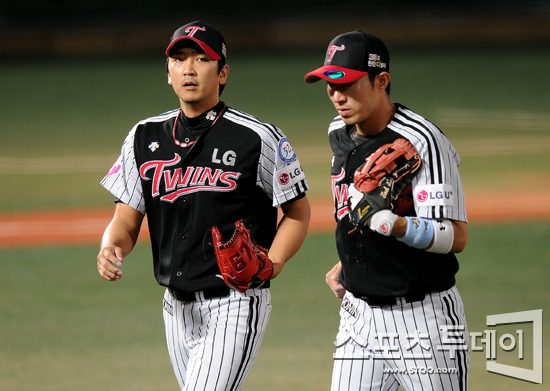 [목동=스포츠투데이 정재훈 기자] 21일 오후 목동 야구장에서 열린 '2011 롯데카드 프로야구' 넥센 히어로즈와 LG 트윈스의 경기에서 LG 심수창(왼쪽)이 주키치에 이어 마운드에 올랐다.스포츠투데이 정재훈 사진기자 roze@<ⓒ아시아경제 & 재밌는 뉴스, 즐거운 하루 "스포츠투데이(stoo.com)">