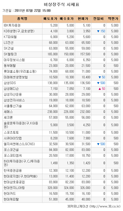 [아시아경제 천우진 기자] 오는 25일 공모 청약 예정인 화장품 제조 및 판매업체 제닉과 26일 공모 청약 예정인 반도체 장비 제조업체 아이씨디가 각각 3만2000원(+6.67%), 5만2500원(+5.53%)으로 급등해 신고가를 재경신했다. 이번달 29일 코스닥 상장 예정인 지능형교통시스템(ITS) 구축업체 경봉은 1만300원(-3.74%)으로 이틀 상승 후 하락했다. 이달 28일 공모 청약 예정인 바이오디젤 생산업체 제이씨케미칼은 1만2000원(+4.35%)으로 하루 쉬고 다시 올라 최고가를 경신했다. 우드그레인 생산업체 화진은 7750원(+3.33%)으로 이틀 쉬고 다시 올라 상승폭을 확대하며 신고가를 갈아 치웠다.상장 승인기업으로 반도체 제조업체 테크윙과 융합유전체 대량분석서비스기업 디엔에이링크가 각각 1만6600원(+1.84%), 1만원(+2.56%)으로 2일, 5일 연속 상승했다. 상장 예심청구 기업으로 음반 제작업체 와이지엔터테인먼트가 3만3000원(+6.45%)으로 급등했으나 비금속 광물제품 제조업체 사파이어테크놀로지와 터보엔진 제품 제조업체 뉴로스는 각각 8만1500원(-2.40%), 9150원(-7.58%)으로 하락했다.시스템통합(SI) 관련주로 삼성SDS가 13만6500원(-0.36%)으로 사흘 만에 하락했다. 엘지씨엔에스는 3만1500원(-1.56%)으로 5거래일 만에 약세로 돌아섰다. 대우정보시스템은 6350원으로 시세 변동이 없었다.생명보험 관련주로 미래에셋생명이 1만400원(-0.48%)으로 내려 약세를 이어갔다. KDB생명보험은 3950원(-3.66%)으로 하락하며 5주 최저가로 밀려났다.애니메이션 제작업체 오콘은 7500원(+1.35%)으로 7일 연속 신고가 행진을 이어갔다. 의료장비 제조업체 삼성메디슨도 7100원(+0.71%)으로 올라 9거래일 동안 상승세가 이어졌다. 전기 변환장치 제조업체 시그넷시스템은 2400원(-2.04%)으로 하락하며 장을 마감했다.자료제공: