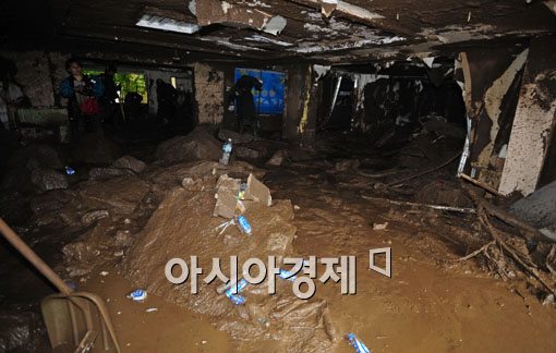 [아시아경제 윤동주 기자] 28일 오전 대규모 산사태가 난 서울 우면산 인근 아파트 현장에서 군장병들이 아파트 가정집으로 밀려들어온 토사와 돌덩이를 치우고 있다.윤동주 기자 doso7@<ⓒ세계를 보는 창 경제를 보는 눈, 아시아경제(www.asiae.co.kr) 무단전재 배포금지>