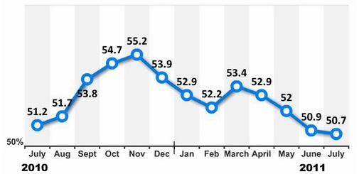 [아시아경제 박선미 기자]중국 제조업 경기가 '뚜렷한' 성장 둔화를 보이고 있다. 아직 경기 위축을 말할 단계는 아니지만 중소 제조업체들을 중심으로 자금난, 인력난, 위안화 절상, 원자재 가격상승, 전력부족 등이 계속될 경우 제조업 경기 불황이 현실로 다가올 수도 있다는 우려는 커지고 있다.1일 중국 정부가 공식 발표한 7월 제조업 구매자관리지수(PMI)가 4개월 연속 낮아져 경기 확장과 위축의 갈림길인 50선을 겨우 턱걸이 했고, 민간 HSBC홀딩스가 발표한 PMI는 50선도 지키지 못했다. 제조업 PMI는 50을 넘으면 경기가 확장 국면에 있음을 의미하며 반대로 50 이하로 떨어지면 경기가 위축됐다는 것을 설명한다.◆국가통계국 발표 7월 PMI 50선 '턱걸이'=중국 국가통계국과 중국 물류구매협회(CFLP)가 집계한 중국의 7월 제조업 구매자관리지수(PMI)는 50.7을 기록했다. 6월 50.9보다 0.2포인트 떨어져 4개월 연속 하락 그래프를 그렸다. 최근 29개월 사이에 가장 낮은 기록이다. 농부식품 가공업과 음료 제조업, 철 제련 및 가공업 등 10개 항목이 기준선 50을 넘었지만 유색금속 제련 및 가공업, 일반설비 제조 등 9개 항목은 50을 밑돌았다. 신규주문지수(51.1), 생산지수(52.1), 신규수출주문지수(50.4), 구매가격지수(56.3)가 50을 넘었지만 재고지수(49.2)와 수입지수(49.1)가 기준선 50 아래로 떨어졌다.HSBC홀딩스가 발표한 중국의 7월 HSBC 제조업 PMI는 49.3을 기록, 전월 50.1보다 하락했다. 2010년 7월 이후 28개월만에 처음으로 기준선 50 밑으로 추락했다. 지수는 지난 1월 54.5에서 6월 50.1로 지속적 하락세다. ◆中 제조업 경기 '위축' 단정하기는 어려워=중국 제조업 경기가 성장 둔화를 보이고 있는 것은 분명하지만 HSBC홀딩스가 발표한 PMI가 50 밑으로 떨어졌다고 해서 제조업 경기가 위축됐다고 단정짓기는 어렵다. 국가의 공식 발표는 50선 위를 지킨데다, HSBC의 발표가 50 밑으로 떨어진 것이 수 개월 지속된 상황이 아니기 때문이다.파이낸셜타임스(FT)는 "중국 제조업 경기가 가파른 성장을 멈추고 하향 안정되고 있는지, 아니면 위축되고 있는 것인지가 궁금한 상황"이라며 시장의 관심이 8월 제조업경기 지수로 모아지고 있다고 전했다. 장리췬(張立群) CFLP 특약 분석사는 "PMI가 4개월 연속 하락함으로써 중국 경제가 여전히 조정국면에 있음을 나타냈다"고 전제하면서도 "경제성장률을 보면 조정속도가 완만해 정부가 의도하는 방향으로 흘러가고 있다"고 말했다.호주 은행 ANZ는 중국 경제 보고서에서 "주기적으로 7월 PMI가 1년 중 가장 낮게 나오는 경향이 있다"며 "감소세를 타던 산업생산이 6월 반등 전환 한 것 처럼 8월 PMI도 다시 반등할 가능성이 있다"고 전했다. 바클레이즈 캐피탈의 창 지엔 이코노미스트도 "중국 PMI는 여름이 되면 낮아지는 특징이 있다"며 "2005년부터 2010년까지 여름 기간 월간 PMI 하락률은 평균 2.5% 수준이었다"고 설명했다.◆제조업 경기 어렵게 하는 요인들=중국 제조업체들의 상황은 자금난, 인력난, 위안화 절상, 원자재 가격상승, 전력부족 등으로 좋지 않다. 특히 정부 지원을 받는 국유기업 보다는 중소 기업들의 상황이 더 어렵다.중국 정부는 올해 인플레이션율은 4% 수준으로 맞추기 위해 기준금리와 은행 지급준비율을 계속 올리고 있다. 올해들어 세 차례 단행된 금리인상으로 예금금리와 대출금리는 각각 3.5%, 6.56%로 올라갔고 대형은행 기준 지준율은 21.5%로 이미 사상 최고다. 은행들이 대출에 조심스러워 지면서 중소기업 보다는 대기업 위주로 대출을 해주다 보니 중소기업은 돈 빌릴 때가 없어 비은행 금융기관의 도움을 받아야 자금 융통이 가능한 상황이다. 이 마저 중국 은행 당국이 유동성 관리의 효율성을 끌어올리기 위해 비은행 금융기관의 그림자금융을 규제하면서 여의치 않다.임금인상과 원자재 가격 상승은 기업의 비용 지출 부담을 가중시키고 있다. 늘어난 여름 전력 수요에 대응하기 위해 정부가 전국적으로 전력 사용 제한 정책을 펴면서 제조업체 공장 가동이 차질을 빚고 있기도 하다. 위안화 절상은 물건을 만들어 해외 시장에 수출하는 중소기업들의 경쟁력을 잃게 했다. 이날 달러·위안 환율은 6.44위안대 밑으로 떨어졌다. 중국 인민은행은 1일 달러·위안 환율을 6.4399위안으로 고시했다. 2005년 7월 이후 역대 최저치를 경신했다. 외환시장 전문가들은 달러·위안 환율이 올해 5% 안팎의 하락률을 기록, 6.2~6.3위안대까지 내려갈 것으로 내다보고 있다. 박선미 기자 psm82@<ⓒ세계를 보는 창 경제를 보는 눈, 아시아경제(www.asiae.co.kr) 무단전재 배포금지>