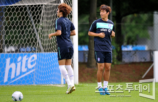 [파주=스포츠투데이 정재훈 기자] 한일전(8월 10일)을 앞두고 파주NFC에 소집된 국가대표팀 선수들이 7일 오후 훈련을 하고 있다. 이재성(울산 현대, 왼쪽)과 박주영(AS모나코, 오른쪽)이 몸을 풀고 있다.스포츠투데이 정재훈 사진기자 roze@<ⓒ아시아경제 & 재밌는 뉴스, 즐거운 하루 "스포츠투데이(stoo.com)">