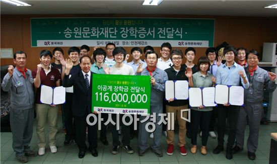 [아시아경제 조슬기나 기자]동국제강이 지역사회 이공계 발전 지원을 위해 사업장 인근 12개 대학생 58명에게 학기에 일인당 200만원씩 장학금 1억1600만원을 전달했다.조슬기나 기자 seul@<ⓒ세계를 보는 창 경제를 보는 눈, 아시아경제(www.asiae.co.kr) 무단전재 배포금지>조슬기나 기자 seul@<ⓒ아시아 대표 석간 '아시아경제' (www.newsva.co.kr) 무단전재 배포금지>