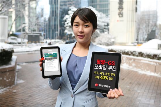 [아시아경제 임철영 기자]동양종금증권(대표이사 유준열)은 25일부터 마케팅 전문기업 GS넥스테이션㈜ (대표이사 이광현)과 제휴를 맺고 모바일 쿠폰을 할인 구입하거나 동양 MyPoint로 쿠폰 결제가 가능한 ‘동양-GS 모바일 쿠폰’ 할인 제휴서비스를 제공한다.‘동양-GS 모바일 쿠폰’ 할인 제휴서비스는 GS칼텍스, 엔제리너스커피, CGV, 파리바게뜨 등 커피, 외식, 편의점, 영화, 테마파크, 주유 및 자동차 경정비 등에서 이용 가능한 모바일 할인쿠폰으로, 시중 판매 가격보다 최대 40%까지 할인된 가격으로 구입 할 수 있다.동양종금증권 홈페이지(www.MyAsset.com) 내 제휴존을 통해 원하는 할인 쿠폰을 구입한 후 휴대폰 MMS로 전송받은 모바일 쿠폰을 지정 사용처에서 이용하면 된다. 모바일 쿠폰 구입시 동양종금증권 고객의 금융상품 거래실적에 따라 적립되는 동양 MyPoint와 GS&POINT, 신용/체크카드, 은행이체 등과 복합 결제가 가능한 것이 또 하나의 특징이다.동양종금증권 윤성희 마케팅본부장은 “모바일 쿠폰 시장 확대에 따른 경쟁력있는 모바일 쿠폰 제휴사 입점과 포인트 사용처 확대를 통해 고객 서비스 및 만족도를 더욱 높일 수 있을 것”이라며, “당사는 11번가, 롯데닷컴, 인터파크도서, 동양매직 등 기존 제휴서비스에 안주하지 않고 지속적인 제휴를 통한 고객 만족을 위해 최선을 다하겠다”고 말했다.제휴서비스에 대한 기타 자세한 사항은 동양종금증권 홈페이지(www.MyAsset.com) 또는 고객지원센터 (1588-2600)로 문의하면 된다.임철영 기자 cylim@<ⓒ세계를 보는 창 경제를 보는 눈, 아시아경제(www.asiae.co.kr) 무단전재 배포금지>