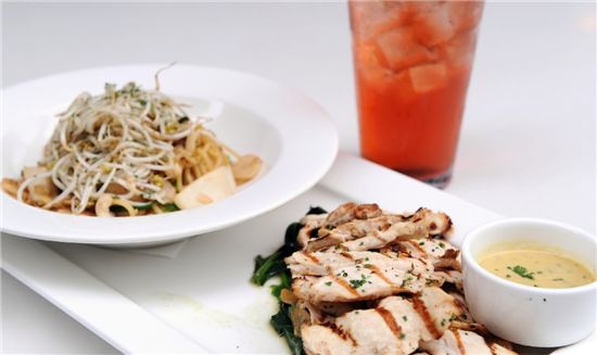 저녁 메뉴는 '닭 가슴살구이와 시금치볶음'(396kcal)과 '해산물볶음파스타'(351kcal)에 '오미자에이드'(198kcal)였다. 소금이 거의 없이 오븐에 구워낸 닭 가슴살을 겨자 소스에 찍어 먹는 '닭 가슴살구이와 시금치볶음'은 씹는 맛이 억세다는 단점을 최소화한 '맛있는' 닭 가슴살 요리였다. 여러 해산물에 숙주, 마늘, 파스타 면을 넣고 올리브 오일와 피시 소스로 볶아낸 '해산물볶음파스타'도 기존 이탈리안 레스토랑에서 먹던 파스타 맛과 염도에서 크게 벗어나지 않았다.