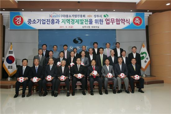 [아시아경제 최대열 기자]중소기업진흥회는 2일 경상북도 상주시와 중소기업의 발전과 지역경제 활성화를 위한 업무협약을 맺었다. 양측은 이날 기업하기 좋은 환경조성과 지역경제 발전을 위한 공동의 프로젝트 추진 및 정보교환 등을 협력해 나가기로 합의했다.최대열 기자 dychoi@<ⓒ세계를 보는 창 경제를 보는 눈, 아시아경제(www.asiae.co.kr) 무단전재 배포금지>