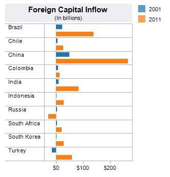 해외자금 유입(단위 십억달러)/그래프: WSJ