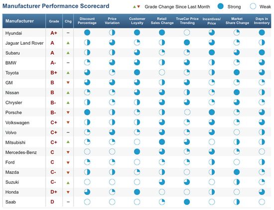 [아시아경제 이정일 기자] 현대자동차가 미국 내 완성차 업체를 대상으로 매달 실시하는 평가에서 당당히 1위에 올랐다. 이로써 3개월 연속 1위 자리도 지켰다.21일 미국 자동차 정보 업체인 트루카닷컴(truecar.com)에 따르면 지난 8월 미국 내 완성차 업체 평가에서 현대차는 A+ 등급을 받아 1위에 랭크됐다. A+ 등급은 현대차가 유일하다. 뒤이어 재규어 랜드로버와 스바루가 A 등급으로 공동 2위, BMW가 A-로 4위를 각각 기록했다.트루카닷컴은 가격 할인, 가격 변동, 고객 충성도, 판매증가율, 가격변동 평가, 인센티브, 시장점유율 변동, 재고 기간 등 8개 항목을 평가해 매달 순위를 발표한다.현대자동차는 제값 받기 캠페인을 통해 가격 할인폭이 낮고, 판매가도 편차가 심하지 않아 안정적이며, 고객들의 충성도가 매우 강하다는 점을 높게 평가받았다. 또한 판매량 증가세가 두드러지고 이로 인해 재고 기간이 짧다는 점도 최고 점수를 이끌어냈다.이번 1위 등극으로 현대차는 3개월 연속 1위 자리에 오르는 기염을 토했다. 현대차는 올 3월 A 등급으로 2위에 올라 첫 3위권 진입에 성공한 이후 지속적인 성장세를 이어오고 있다.현대차는 브랜드 평가에서도 A 등급을 받아 지프, GM, 랜드로버에 이어 4위에 올랐다. 가격 할인, 고객 충성도, 판매증가율, 재고기간 부문에서 최고 점수를 받은 덕분이다. 제시 톱락 트루카닷컴 책임연구원은 "현대차의 상승세가 멈출 기미를 보이지 않는다"며 "주요 평가에서 상위권을 휩쓸고 있다"고 말했다.한편, 이번 평가에서 도요타는 전달 C- 등급에서 B+ 등급로 급상승해 3월 강진 이후 서서히 경쟁력을 되찾아가는 것으로 나타났다. 반면 폭스바겐은 A 등급에서 C+ 등급으로 추락하며 조사 대상 업체 18곳 가운데 하락폭이 가장 컸다.