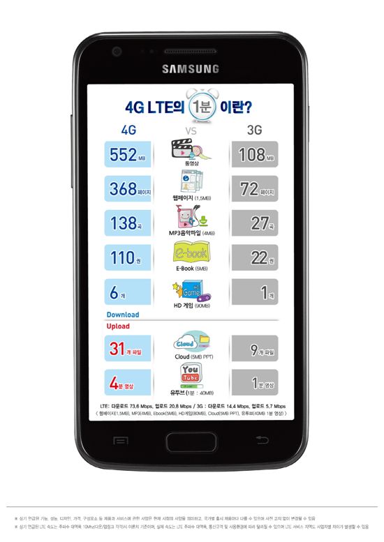 [아시아경제 명진규 기자, 권해영 기자]삼성전자가 아이폰5 출시 직전 4세대(4G) 통신 롱텀에볼루션(LTE)을 탑재한 안드로이드폰을 선보인다. 갤럭시S, 갤럭시S2 등을 연이어 히트시키며 스마트폰 시장을 장악한 삼성전자의 새 제품은 기존 3세대(3G) 스마트폰 보다 데이터 전송속도가 5배 이상 빠르고 아이폰4 수준으로 해상도를 높인 HD 수퍼아몰레드를 탑재해 세계 최고 사양의 스마트폰이 될 전망이다. 26일 삼성전자는 서울 서초사옥 다목적홀에서 무선사업부장 신종균 사장이 참석한 가운데 미디어데이 행사를 갖고 LTE 스마트폰을 선보였다. 이날 공개된 제품은 SK텔레콤 전용으로 출시되는 '갤럭시S2 LTE'와 통신 3사에 모두 출시되는 '갤럭시S2 HD LTE' 두가지다. 두 제품 모두 3세대(3G) 통신 보다 최대 5배 빨라진 LTE를 탑재했다. 1분에 음악파일(4MB 기준) 138곡, 전자책(5MB 기준) 110권, HD급 게임(90MB 기준) 6개를 다운로드 받을 수 있다. 실시간으로 HD급 동영상을 전송할 수 있다. 특히 갤럭시S2 HD LTE는 세계 최초로 HD급 해상도(1280×720)급의 4.65인치 아몰레드 디스플레이를 탑재했다. 애플이 아이폰4를 선보이며 '레티나(망막)'이라며 자랑했던 고해상도의 디스플레이를 아몰레드로 구현한 것이다. 아이폰4의 해상도는 960×640으로 갤럭시S2 HD LTE는 아이폰보다 해상도는 높고 인치수는 커졌다. 색감도 일반 LCD 보다 화사하고 밝아 차세대 디스플레이의 면모를 여지없이 보여줄 전망이다. 특히 이 제품은 현존하는 모든 통신 방식을 지원해 통신 3사에 모두 출시된다. 이미 LTE 상용화를 한 SKT와 LG유플러스에는 10월 초 출시되고 11월에는 KT를 통해서도 출시된다. SKT와 KT에 출시되는 제품은 3G 통신 서비스인 HSPA+를 지원하고 LG유플러스에 출시되는 제품은 리비전A를 지원한다. 유럽지역에서 사용되는 2세대(2G) 통신 기술 GSM도 이용할 수 있다. 전 세계 어디에서나 사용할 수 있는 셈이다. 삼성전자는 초박형 설계 기술을 이용해 9.5㎜의 두께로 줄여 기술력을 과시했다. 삼성전자 무선사업부 신종균 사장은 "삼성전자는 국내 스마트폰 1위의 기술력을 바탕으로 소비자에게 완벽한 스마트 라이프를 경험할 수 있도록 할 것"이라며 "혁신적인 LTE 스마트폰을 선보이며 시장을 선도해 나갈 것"이라고 말했다. 명진규 기자 aeon@권해영 기자 roguehy@<ⓒ세계를 보는 창 경제를 보는 눈, 아시아경제(www.asiae.co.kr) 무단전재 배포금지>