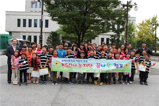 [아시아경제 이솔 기자]예탁결제원이 농촌 초등학교 학생들을 초청해 금융경제교육을 진행한다고 28일 밝혔다.한국예탁결제원의 공익 재단인 KSD나눔재단이 추진하는 농촌어린이 꿈나무 캠프는 28일부터 30일까지 2박3일에 걸쳐 진행된다. 이번 행사에는 전북 삼계초등학교 전교생 40명이 참가하며 금융경제교육, 증권박물관 견학, 국회의사당 방문 등이 예정되어 있다.김경동 예탁결제원 사장은 "농촌 꿈나무들에게 큰 꿈을 키우는 계기를 제공해 공공기관으로서 행복한 사회, 따뜻한 세상을 만들기 위해 노력하겠다"고 말했다. 이솔 기자 pinetree19@<ⓒ세계를 보는 창 경제를 보는 눈, 아시아경제(www.asiae.co.kr) 무단전재 배포금지>